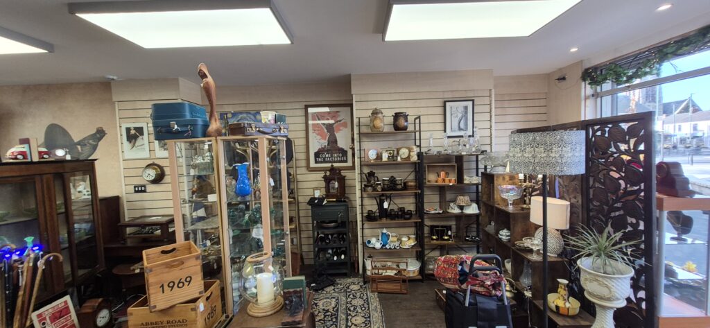 “We are an antique and vintage shop. We sell antiques and vintage items, including furniture, jewellery, vinyl’s and collectibles.