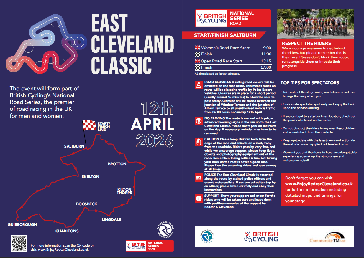 The races for men and women will once again be a part of this year’s British Cycling Open National Road Series. Starting and finishing in Saltburn (near the bandstand), the circuit will also include Skelton, Guisborough, Charltons, Boosbeck, Lingdale and Brotton.