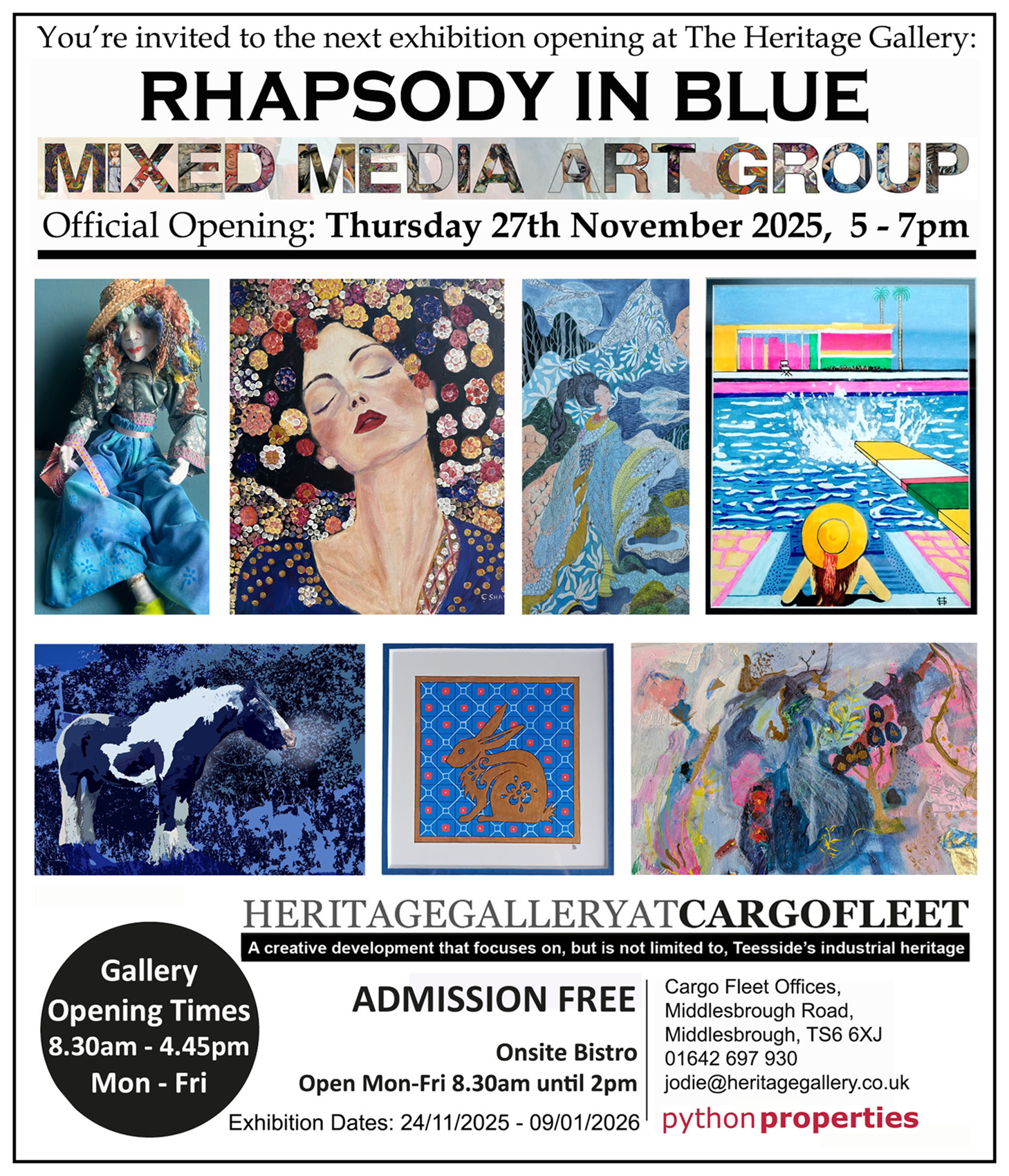 You’re invited to the next exhibition at The Heritage Gallery at Cargo Fleet: ‘Rhapsody in Blue’ – Mixed Media Art Group