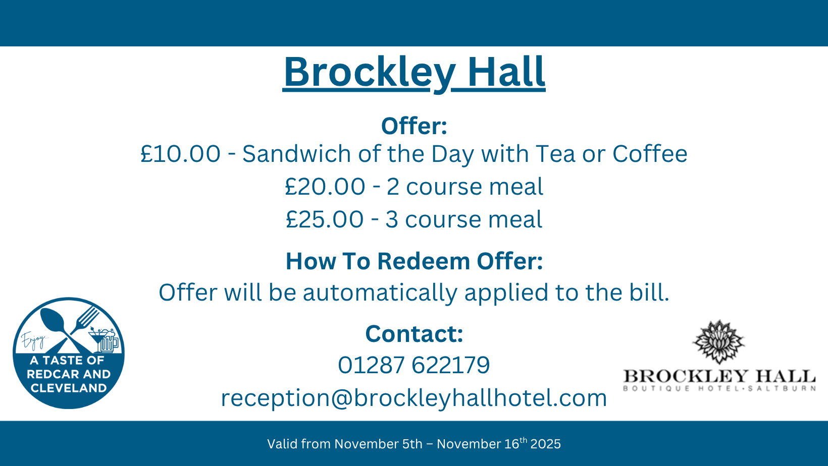 Please note that all deals and restrictions have been set by each participating business. Redcar and Cleveland Borough Council takes no responsibility for any changes to offers, restrictions, or withdrawals during the campaign November 5th – November 16th 2025.