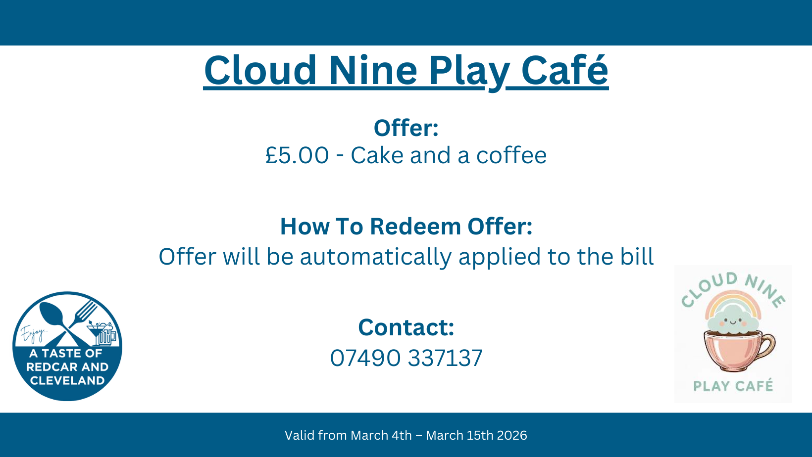 Please note that all deals and restrictions have been set by each participating business. Redcar and Cleveland Borough Council takes no responsibility for any changes to offers, restrictions, or withdrawals during the campaign March 4th – March 15th.