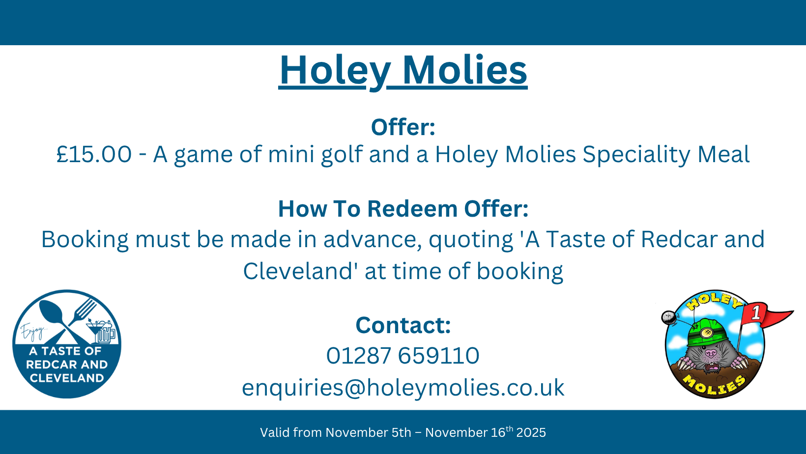 Please note that all deals and restrictions have been set by each participating business. Redcar and Cleveland Borough Council takes no responsibility for any changes to offers, restrictions, or withdrawals during the campaign November 5th – November 16th 2025.