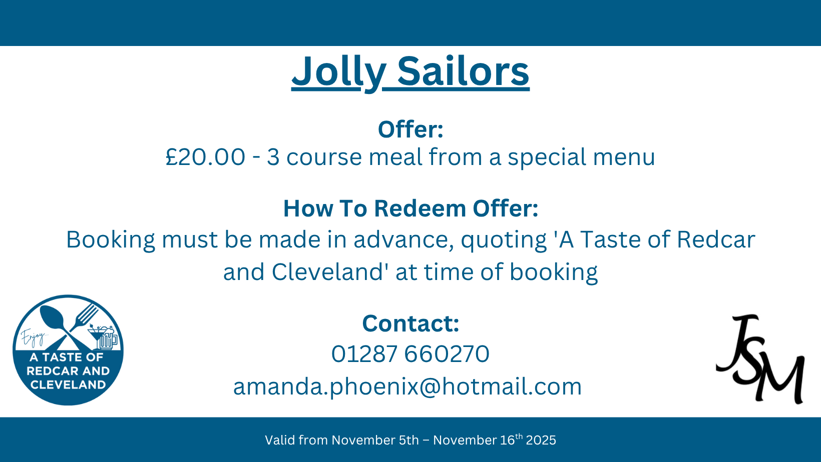 Please note that all deals and restrictions have been set by each participating business. Redcar and Cleveland Borough Council takes no responsibility for any changes to offers, restrictions, or withdrawals during the campaign November 5th – November 16th 2025.